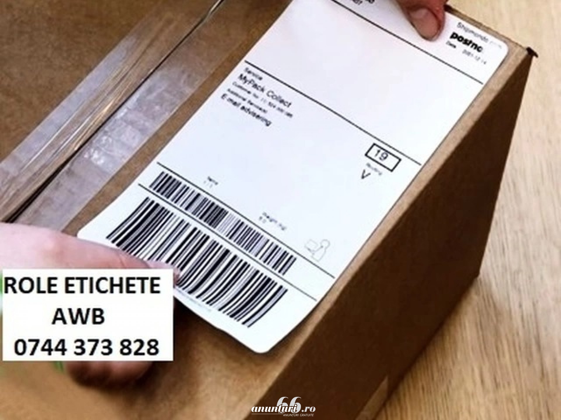 Etichete termice AWB curierat Role etichete termice10cmx15cm alb mat pentru AWB-uri Livrare rapida si gratuita la sediul societatii dvs. in Bucuresti si Ilfov in baza comenzii cu datele pentru facturare, si prin curier rapid contracost la nivel national. Aplicare rapida, fara plicuri de plastic, direct autocopiative. Produse cu preturi de la 45 lei/bucata in functie de tipodimensiune, echipament, brand si modalitate de ambalare. Cutii de 10-30-50-100 buc. Exclusiv B2B. Contact: 0744.373.828