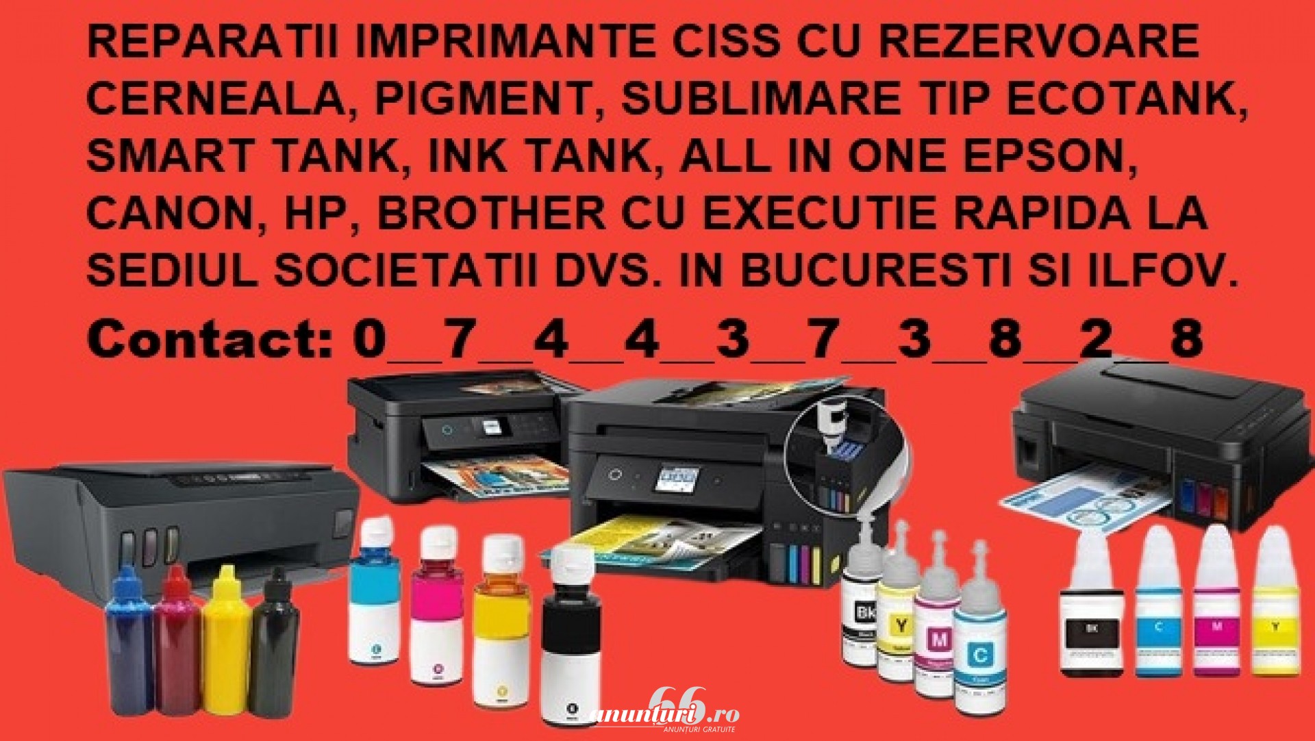 Reparații imprimante ciss cu livrare flacoane cerneala rapid in Bucure