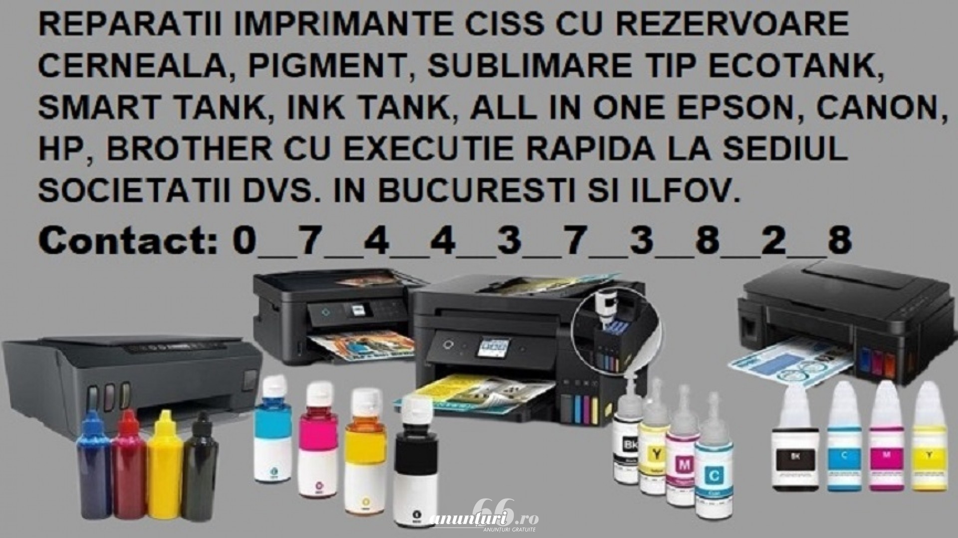 Reparații imprimante rezervoare cu livrare flacoane in Bucuresti