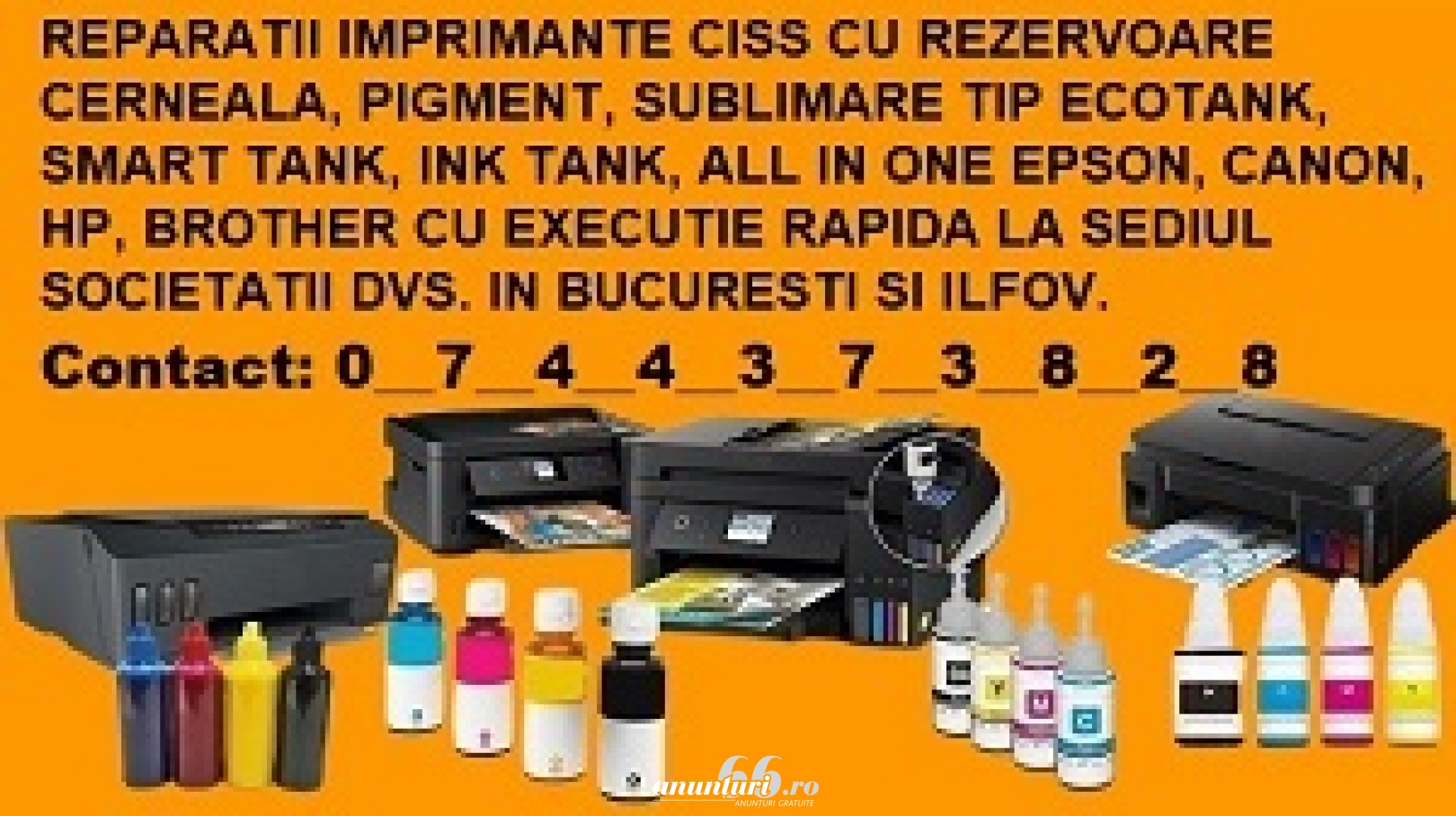 Service imprimante CISS din fabrica Epson Ecotank, Canon Pixma Mega Tank, HP Ink Tank Smart Tank, Brother Ink Benefit etc Service imprimante CISS EcoTank, Mega Tank, Ink Tank, Smart Tank, Ink Benefit etc.